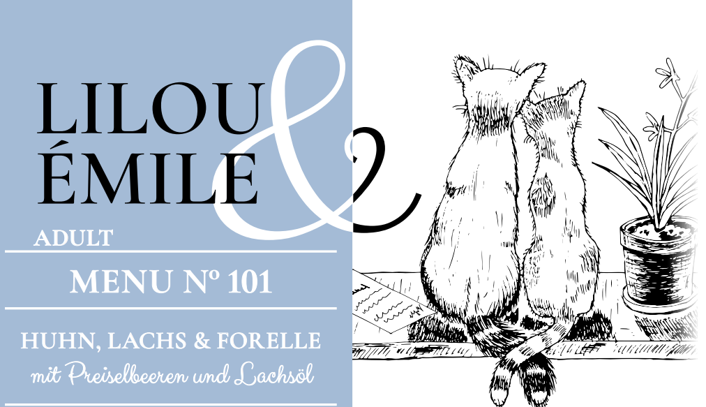 Lilou & Émile ist ein hochwertiges Futtermittel für Katzen und überzeugt mit erlesenen Zutaten. Tauchen Sie mit unseren köstlichen Menus ein in die Haute Cuisine Frankreichs und schwelgen Sie in den Genüssen. Feines Fleisch wird mit ausgewählten Ingredienzen wie Preiselbeeren, dem Extrakt der Grünlippmuschel und Leinsaat zubereitet.
