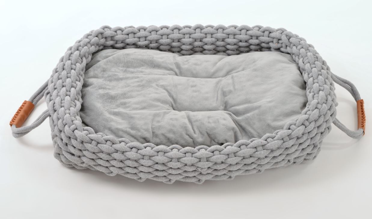 Kuschelbett aus Stoffgeflecht in grau