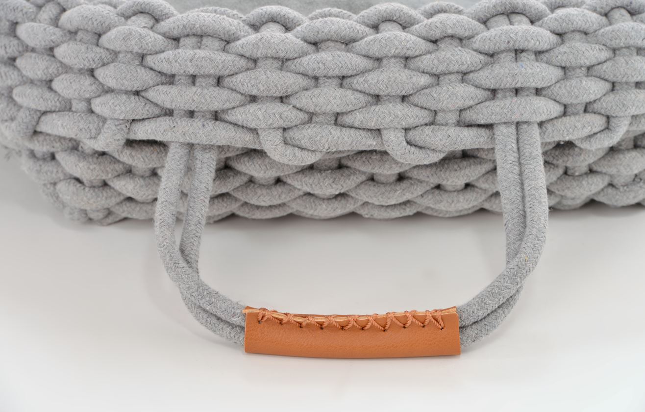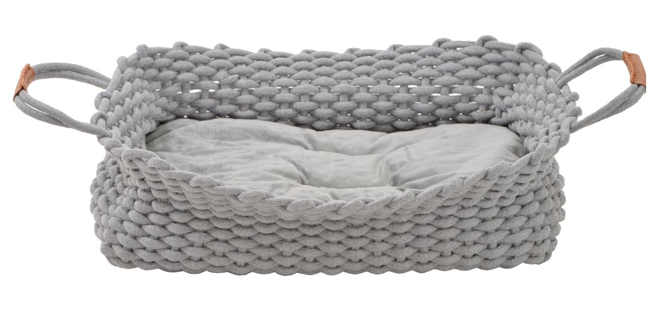 Gemütlichkeit pur verspricht dieses Tierbett. Das hier verwendete Textilgeflecht ist nicht nur extrem anschmiegsam, sondern wirkt auch optisch besonders attraktiv. Für zusätzliche Bequemlichkeit sorgt das innenliegende Kissen, dass herausgenommen und per Hand gewaschen werden kann. Um auch kleineren Tieren den Einstieg zu erleichtern, kann der Rand ganz einfach heruntergeklappt werden. Die beiden Henkel sind mit einem Kunstleder abgesetzt und runden das Ganze optisch ab.