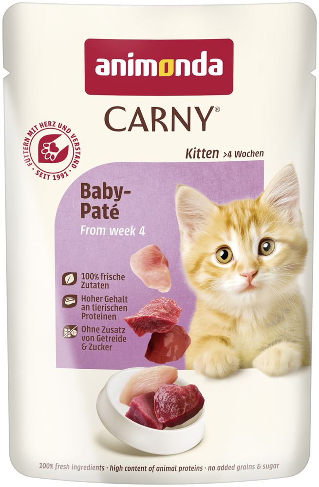 Carny® Kitten Baby Paté – aus frischen fleischlichen Zutaten – steht für ausgewogene, leckere,