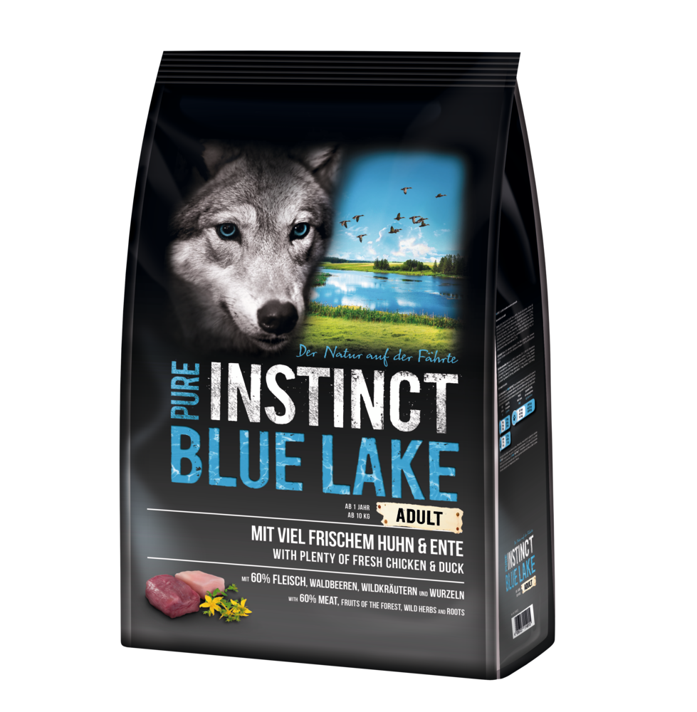 Entdecke PURE INSTINCT Blue Lake mit Huhn und Ente – das besondere Geschmackserlebnis für Deinen Hund! Mit viel Fleisch und hohem Frischfleischanteil wird jede Mahlzeit zum wahren Gaumenschmaus. Angereichert mit wertvollen Waldfrüchten, Wildkräutern und Wurzeln fördert diese natürliche Rezeptur die gesunde Entwicklung von Skelett, Organen und Muskeln. Dank essentieller Vitamine, Mineralstoffe und Spurenelemente erhält Dein Hund eine rundum artgerechte Ernährung. Die getreidefreie Rezeptur ist ideal für Hunde mit Getreideunverträglichkeit. Gönn Deinem Vierbeiner eine schmackhafte und ausgewogene Mahlzeit – ganz im Einklang mit der Natur!Tierart: Hund