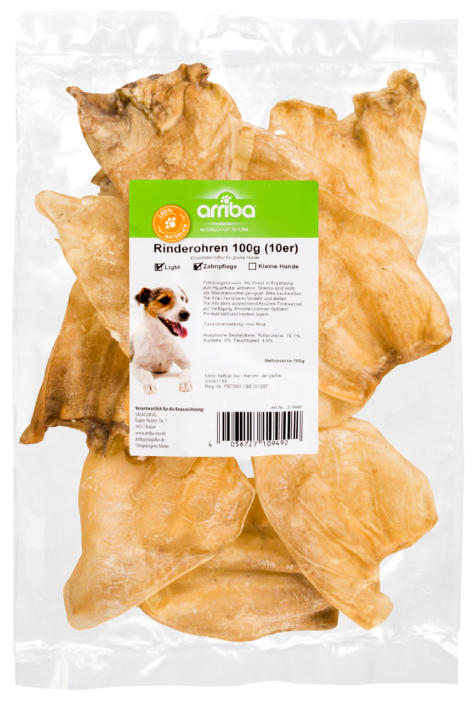 arriba Rinderohren für Hunde 250 gOnline verfügbar8,99 € (je kg = 35,96 €) -