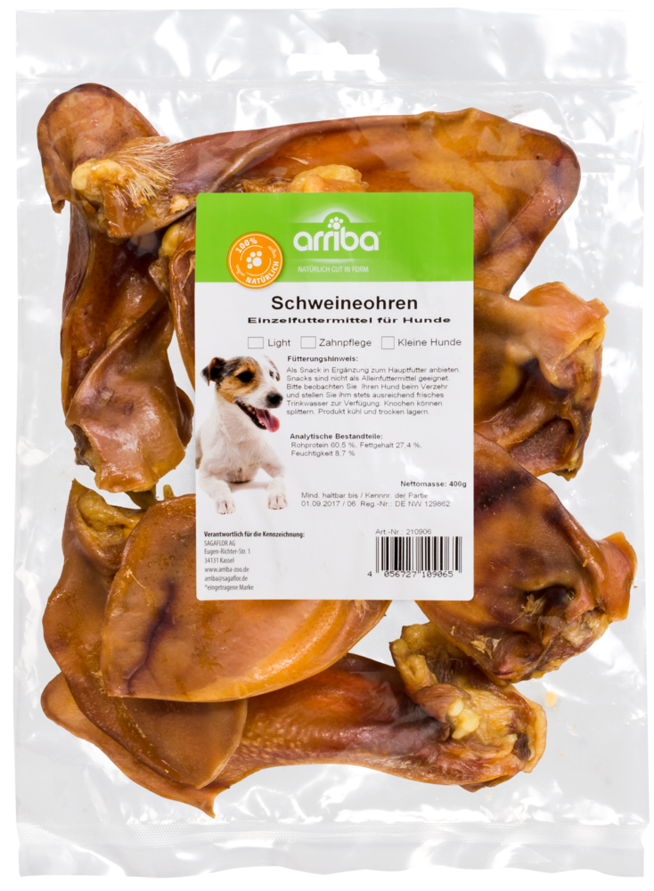 Arriba Schweineohren wurden schonend verarbeitet und getrocknet, und sorgen für Beschäftigung und Kauvergnügen.