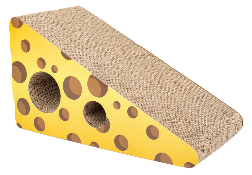 Die Kratzpappe in Käse-Optik ist nicht nur ein niedliches Katzenspielzeug , hergestellt aus robustem Wellkarton bietet sie Ihrer Katze die perfekte Möglichkeit zur Krallenpflege.