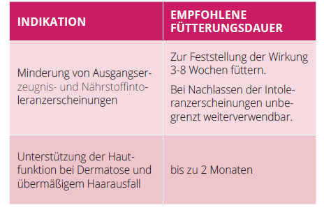 - Leinöl, Biotin und Zink können Reaktionen der Haut reduzieren - für Haut- und Fellgesundheit und feste Krallen.