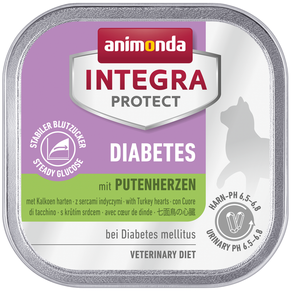 INTEGRA PROTECT Diabetes wurde speziell für zuckerkranke Katzen (Diabetes mellitus) entwickelt. Damit der Blutzuckerspiegel nach der Futteraufnahme möglichst konstant bleibt, sollte die Diätnahrung viel Protein und wenig Kohlenhydrate enthalten. INTEGRA PROTECT Diabetes enthält daher vorwiegend proteinreiche, fleischliche Zutaten, wodurch > 45 % der enthaltenen Energie bereitgestellt werden.- proteinreich