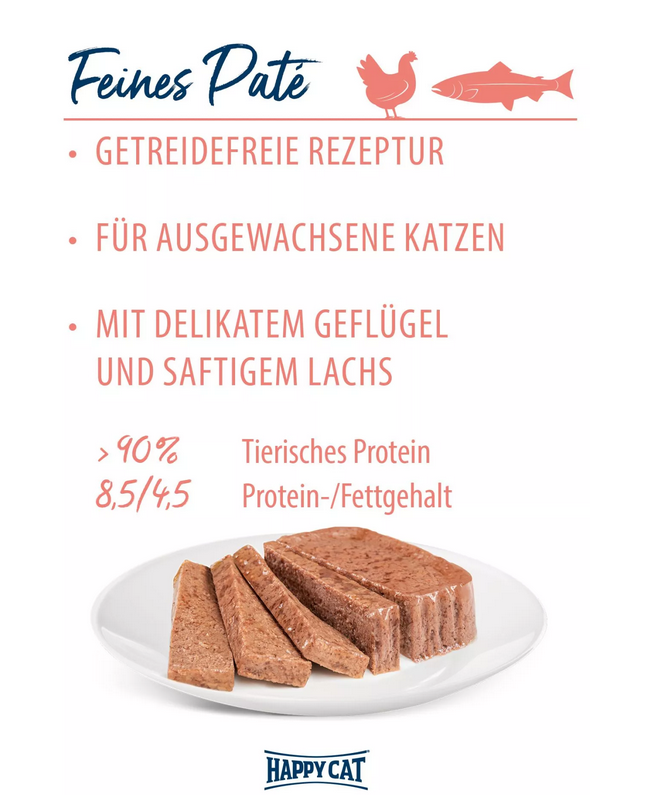 Happy Cat Minkas Duo Geflügel & Lachs Paté - mit delikatem Geflügel und saftigen Lachs
