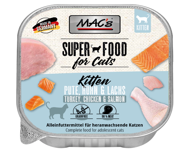 MAC's SUPER FOOD Kitten mit Pute, Huhn und Lachs für Katzen 16 x 100 g
