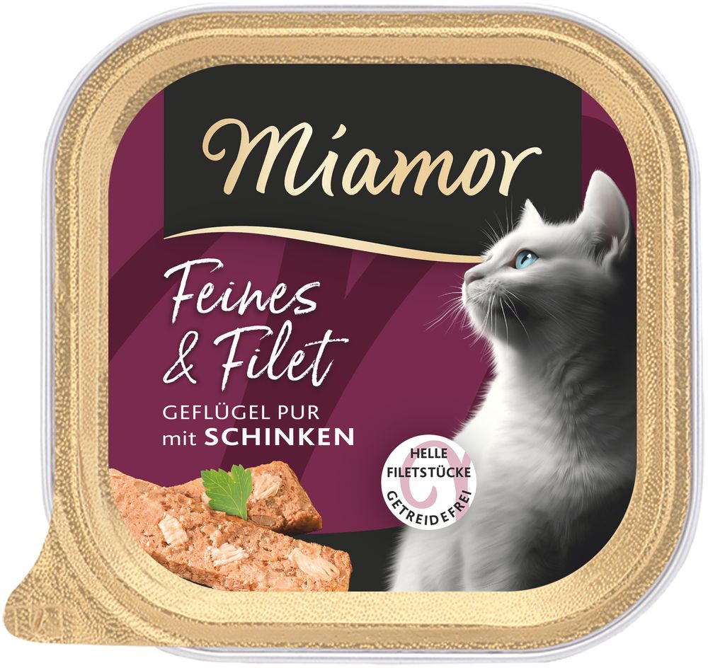 Miamor Feines & Filet für Katzen mit Geflügel und Schinken 16 x 100 g - Zarte Geflügelfilets mit feinem Schinken – getreidefreier Genuss