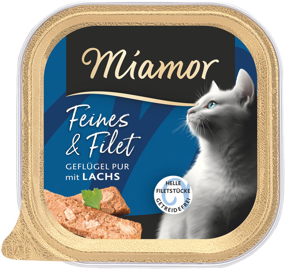 Leicht verdauliche Mahlzeit für ausgewachsene Katzen - Miamor Milde Mahlzeit mit Geflügel Pur & Lachs für Katzen 16 x 100 g