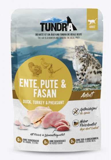 TUNDRA Ente, Pute & Fasan bietet eine köstliche Kombination aus drei hochwertigen Geflügelsorten. Diese Rezeptur liefert deiner Katze frisches Fleisch in Lebensmittelqualität, ergänzt mit Eierschalen als natürliche Calciumquelle. Die getreidefreie Zusammensetzung sorgt für eine artgerechte und gesunde Ernährung.Tierart: Katze