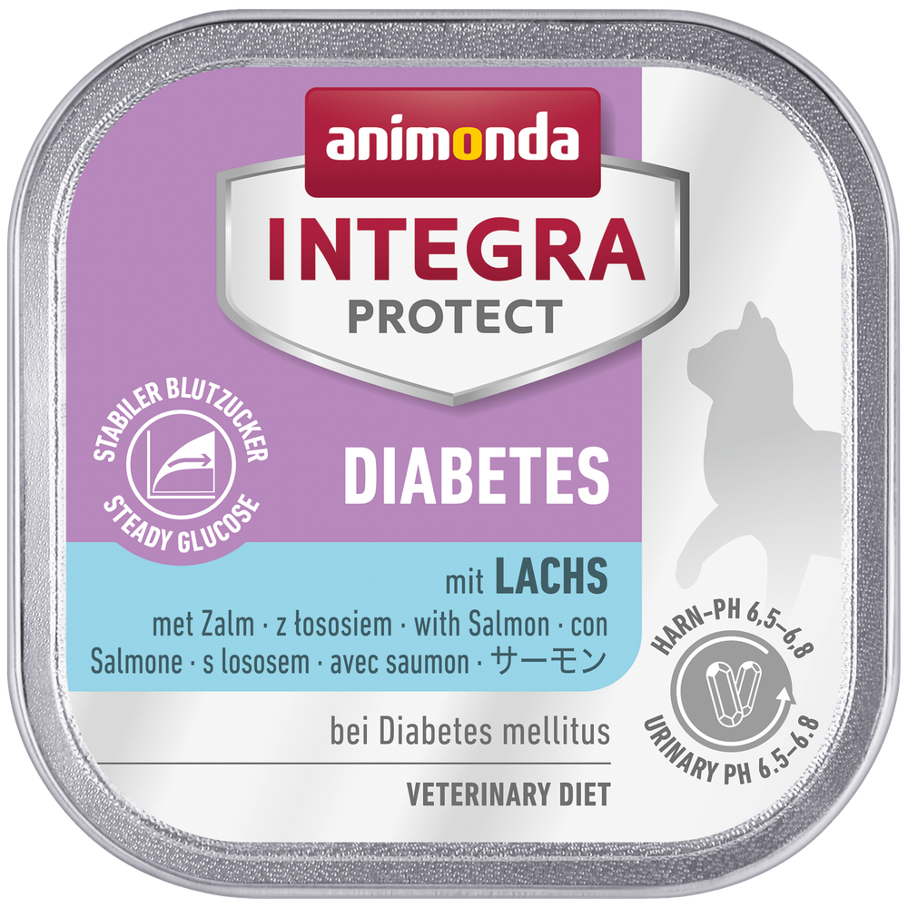 INTEGRA PROTECT Diabetes wurde speziell für zuckerkranke Katzen (Diabetes mellitus) entwickelt. Damit der Blutzuckerspiegel nach der Futteraufnahme möglichst konstant bleibt, sollte die Diätnahrung viel Protein und wenig Kohlenhydrate enthalten. INTEGRA PROTECT Diabetes enthält daher vorwiegend proteinreiche, fleischliche Zutaten, wodurch > 45 % der enthaltenen Energie bereitgestellt werden.- proteinreich
