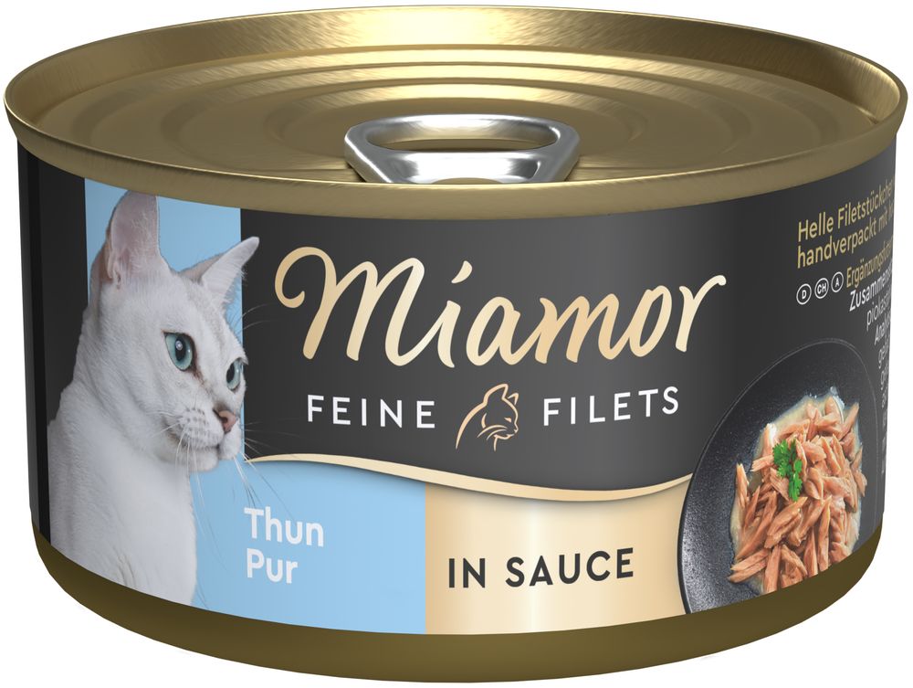 Ausschließlich helle Filetstückchen vom Thunfisch in Sauce, handverpackt mit hochwertigen Zutaten. Eine Filet-Spezialität auf höchstem Niveau - besonders leicht verdaulich, für die anspruchsvolle Katze. Auch für ältere und übergewichtige Katzen.- ausschließlich helles Filet vom Thunfisch in Sauce