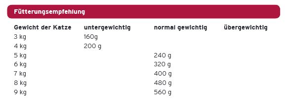 | Gewicht der Katze | untergewichtig | normal gewichtig | |