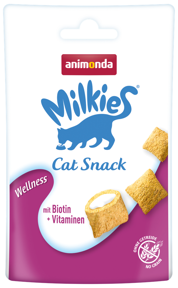 Einfach besser snacken: Die neuen Milkies Wellness Knusperkissen sind nicht nur knackig und lecker, sie helfen auch mit, Haut und Fell Ihrer Katze zu pflegen. Die getreidefreie Knusperkissen mit weniger als 1,5 kcal pro Stück und mit Biotin und VitaminenInverkehrbringer: animonda Petcare gmbh, Frankfurter Str. 31, 49214 Bad Rothenfelde, E-Mail: info@animonda.de