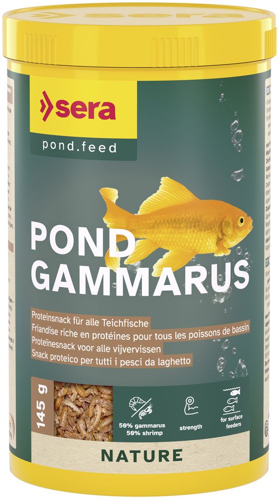 Sera Pond Gammarus Mix ist ein natürlicher, proteinreicher Snack für alle Teichfische, bestehend aus 50 % Gammarus und 50 % Garnelen. Die Mischung unterstützt das natürliche Fressverhalten, stärkt die Vitalität und fördert die natürliche Färbung der Fische – ganz ohne Farb- und Konservierungsstoffe. Ideal für die ganzjährige Fütterung.